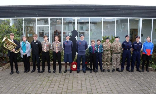 Students from all year groups and a variety of organisations – from Scouts and Guides to Army and Sea Cadets – paid their respects to service men and women lost in combat around the world, dressed in full uniform.